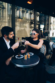 Et puis, la ville les appelle. La pierre glacée des escaliers de la Madeleine, les pavés lisses de la place Vendôme, l’ombre tranquille des Tuileries. Paris, indolent, s’étire à leurs pieds, comme une promesse tenue. Un pont leur offre avec complicité l'opportunité de rejoindre la rive gauche, la Seine qui glisse en silence, une main qui s’effleure. Le dernier acte est toujours évident : une table de café, sa rondeur infinie, luisant écho des tasses qu'elle supporte, sent bon les miettes d’un croissant oublié. Le monde s’efface, il n'existe plus que Paris: celui des livres, des cinémas, des chansons... il existe.